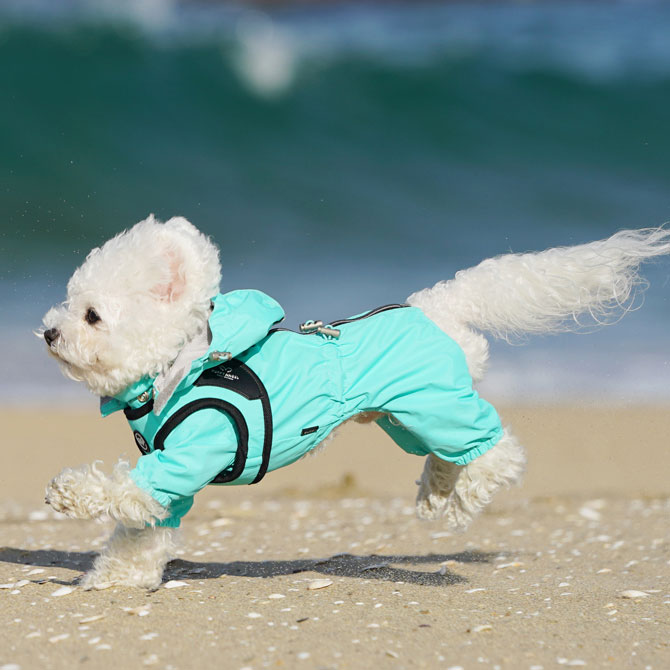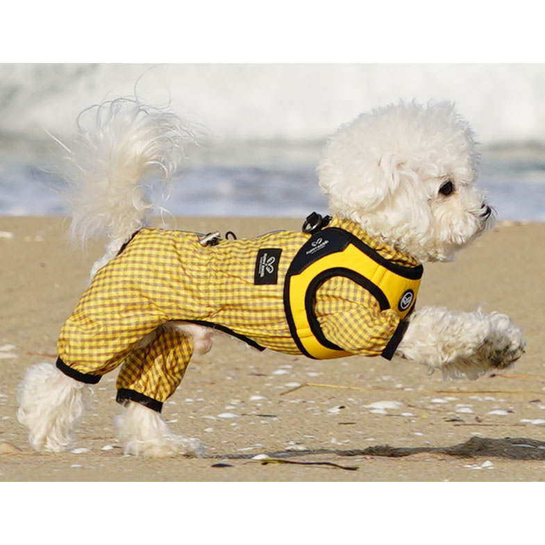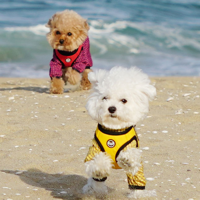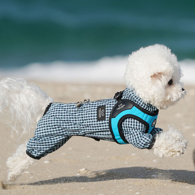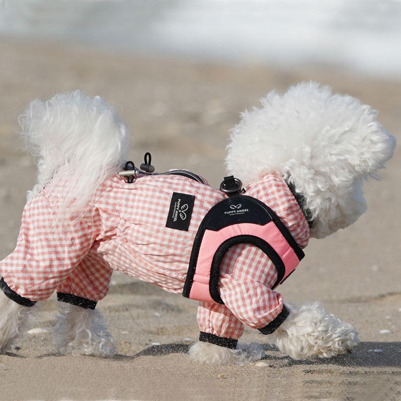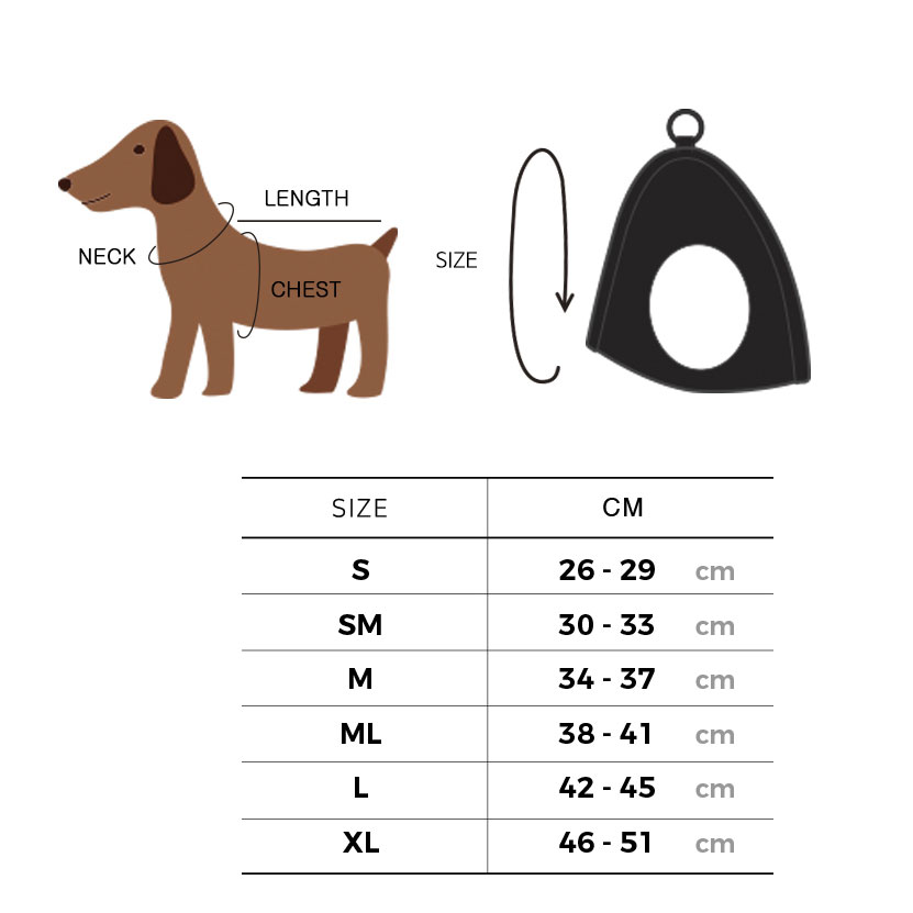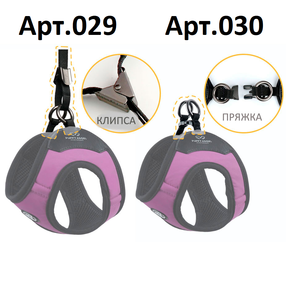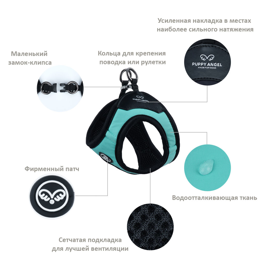 - Застежка - карабин на спине и 2 усиленных кольца для правильного распределения нагрузки на шлейке и фиксации поводка;