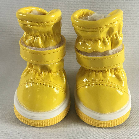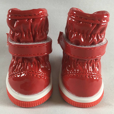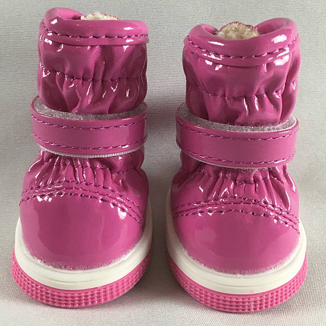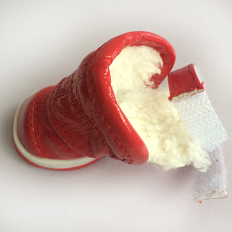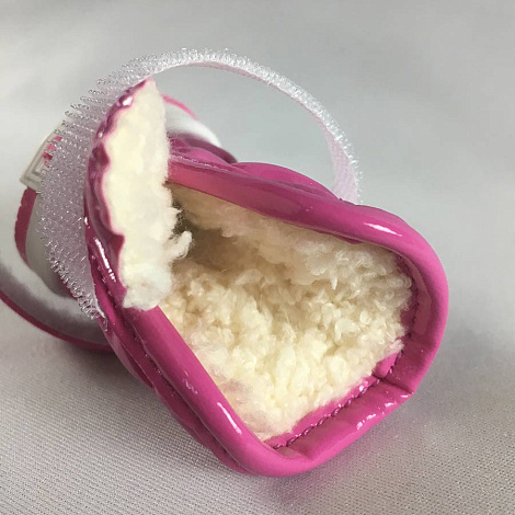 Сапожки дутики идеальны для зимней погоды. Это отличная защита нежных лапок наших малюсек от снега и грязи. Выполнена обувь из мягкого кожзама. На пяточке специальный язычок, для удобства одевания ботиночка. Вокруг ножки липучка-фиксатор, которая позволит изделию крепко держаться на лапке. Внутри по всему изделию проложен мех.