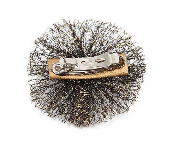 Эта заколка изготовлена из воздушной ткани-сеточки с вкраплением металлизированных волокон, благодаря которым заколка красиво блестит на солнце. Центр заколки украшен изящным камешком.