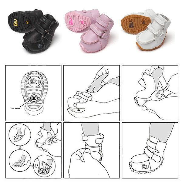 - Способ фиксации решает проблемы съезжания и смещения обуви с лап, влияния на кровообращение конечностей собаки и возникновения чувства неудобства.