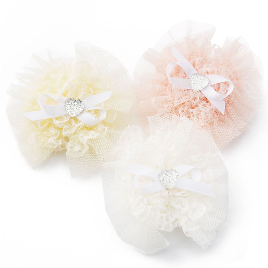 Она изготовлена из сетки и гипюра, представляет собой пышный бант, который в центре украшен нежным сердечком.