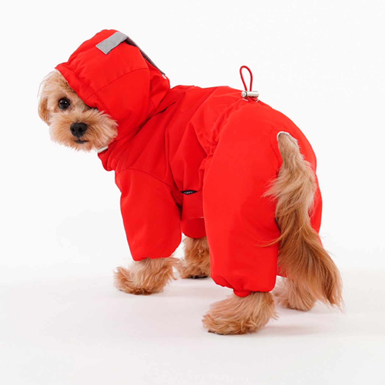 - Отверстие на горловине для поводка или рулетки — можно носить шлейку под комбинезоном.