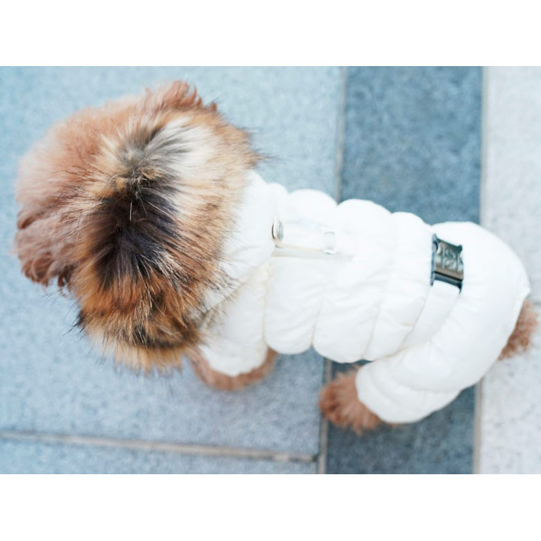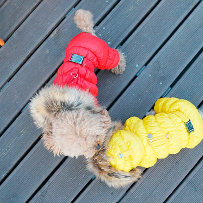 - Под хлястиком сделана прорезь для ошейника, которая застегивается на молнию;