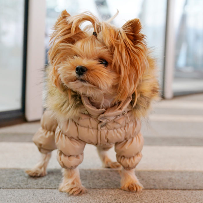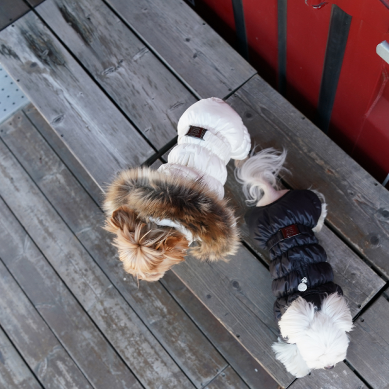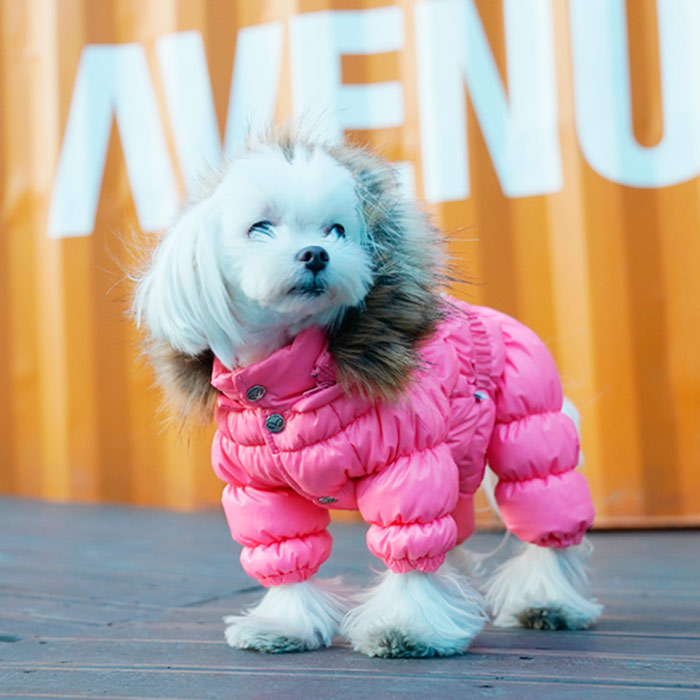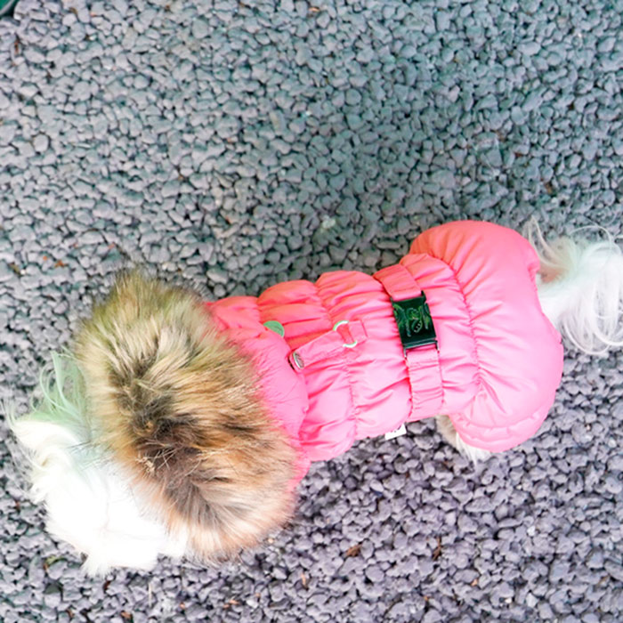 - Под хлястиком сделана прорезь для ошейника, которая застегивается на молнию;