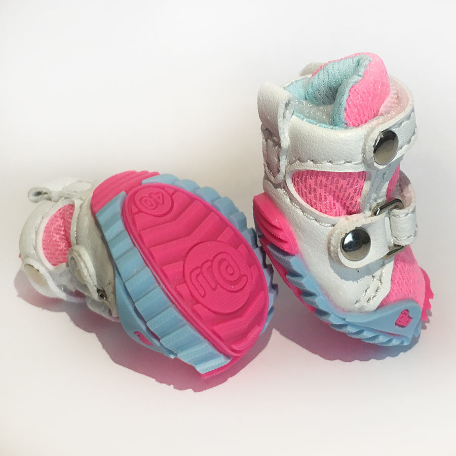- застежка, фиксирующая обувь, помещена в самую узкую часть на передней поверхности лапы собаки. Такое положение застежки не дает обуви смещаться вперед-назад на собачьей лапе и не мешает нормальному движению собаки;