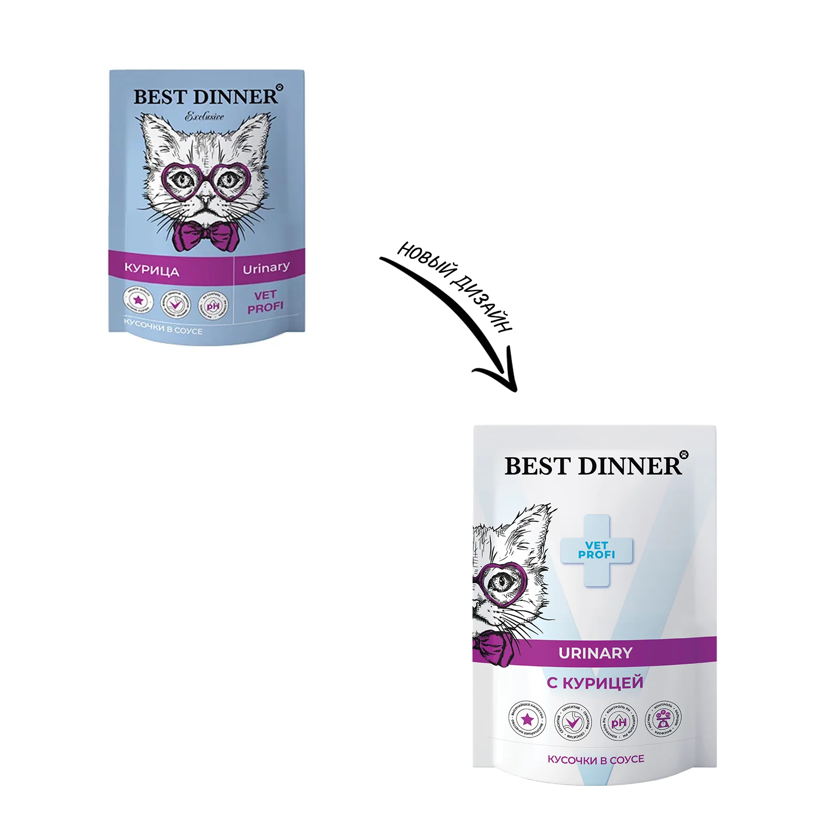 Курица — источник диетического белка и незаменимых аминокислот. Ограниченное количество кальция, фосфора и магния снижает вероятность образования струвитов и оксалатов. DL-метионин обеспечивает поддержку нормального уровня рН мочи, профилактируя образование и стимулирует растворение струвитов. Большое содержание влаги снижает концентрацию мочи, уменьшая риск образования камней. Позаботьтесь о здоровье любимца вместе с Best Dinner!