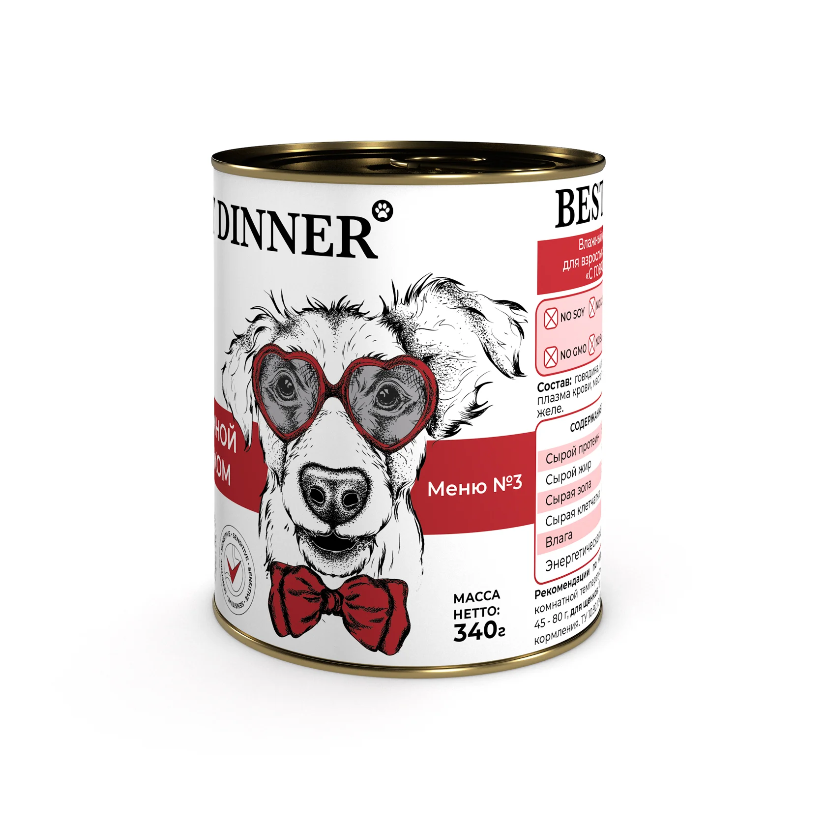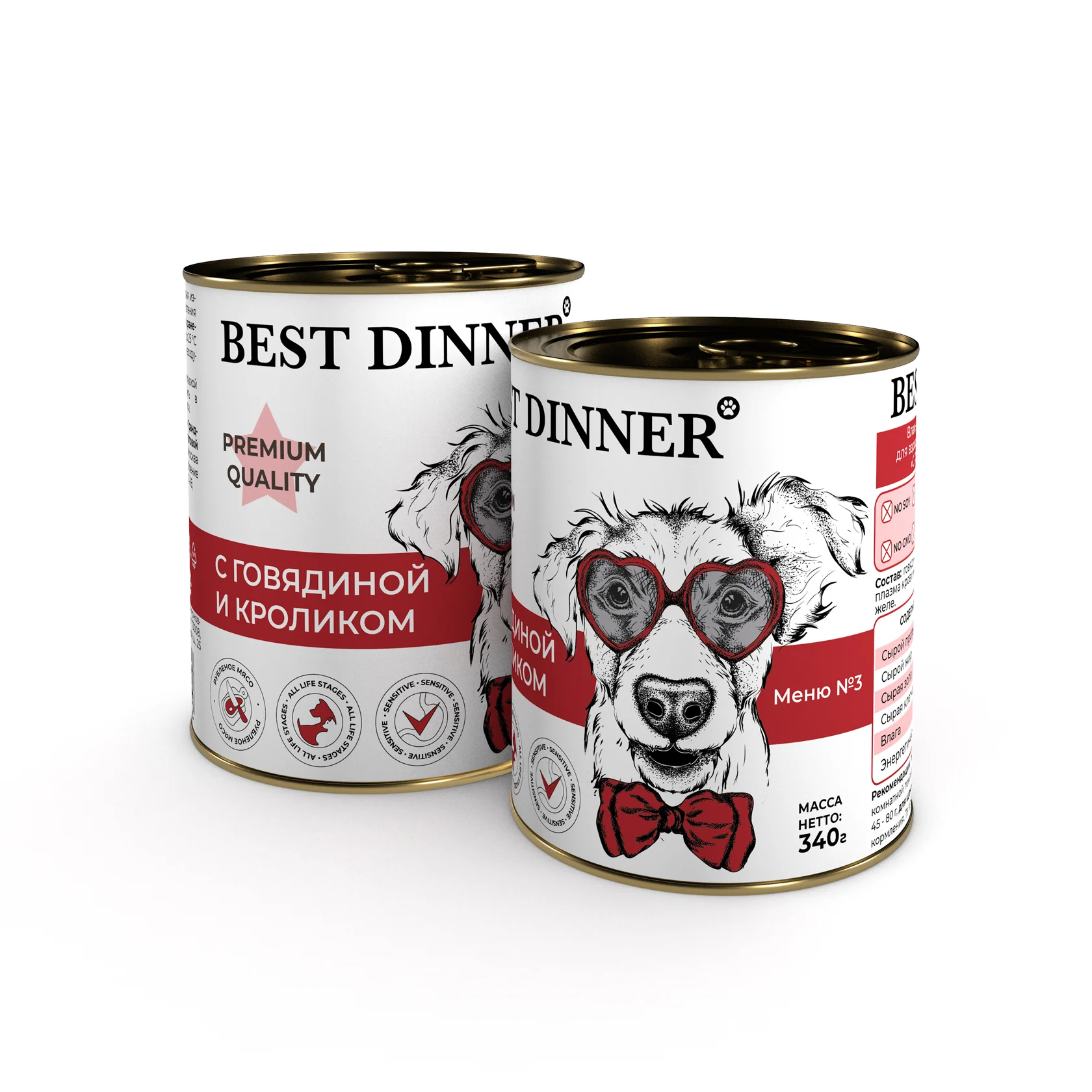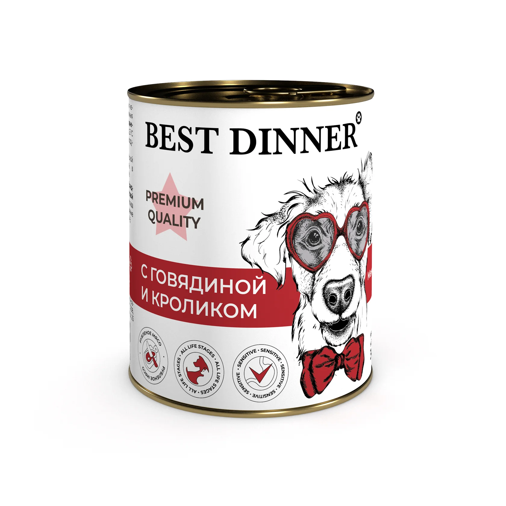 Сбалансированный корм премиум-класса Best Dinner с говядиной и кроликом полностью удовлетворяет потребность собаки в белках, макро- и микроэлементах. Нежирное говяжье мясо обладает неповторимым насыщенным вкусом, высокой питательной ценностью, легко и быстро усваивается. Крольчатина – это диетическое мясо, оно не перегружает желудок и кишечник, способствует выведению шлаков, поэтому часто назначается в качестве лечебной диеты. Рыбий жир является источником энергии и Омега-3 жирных кислот. Оптимальное содержание влаги облегчает щенкам поедание корма, помогает организму лучше усваивать витамины и минералы. Приятный мясной запах консервированного корма привлекает собак и вызывает у них аппетит.