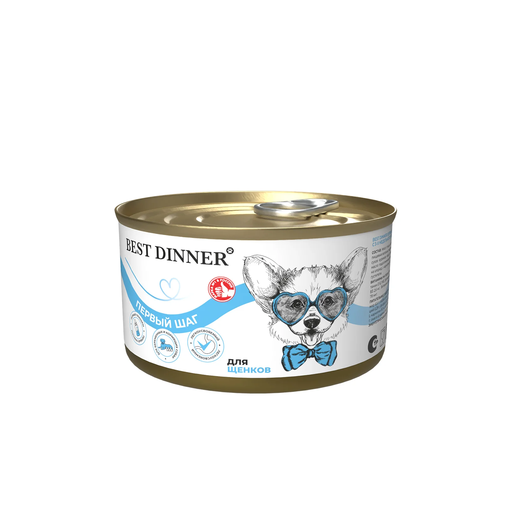 Рацион разработан с учетом физиологических особенностей щенков. Мясо курицы, куриные яйца и молоко являются отличными легкоусваиваемыми источниками незаменимых аминокислот и полноценных белков, необходимых для здорового роста и развития щенка. Рацион дополнен жирными кислотами для поддержания правильного развития нервной системы щенка. Нежная текстура облегчает первый прикорм. Best Dinner "Первый шаг" изготовлен только из натуральных ингредиентов без искусственных красителей, консервантов и ароматизаторов, обогащен всеми необходимыми витаминами и минеральными веществами.