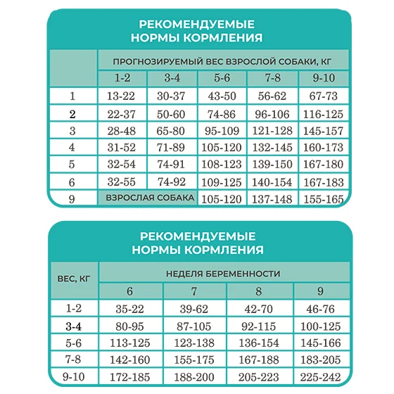 Рекомендуемое количество корма является ориентировочным и зависит от времени года, физической активности и индивидуальных особенностей животного.
