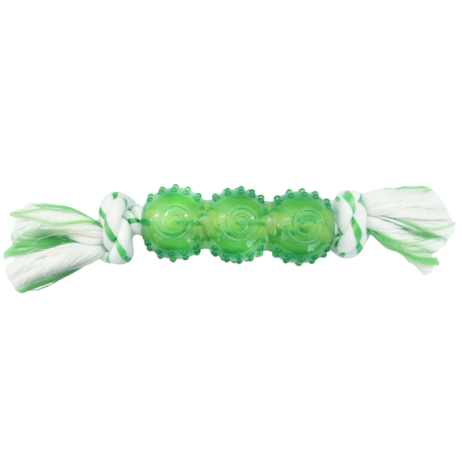 Игрушка для собак "Палочка синтетическая резина с канатом 25 см с ароматом мяты", зеленый