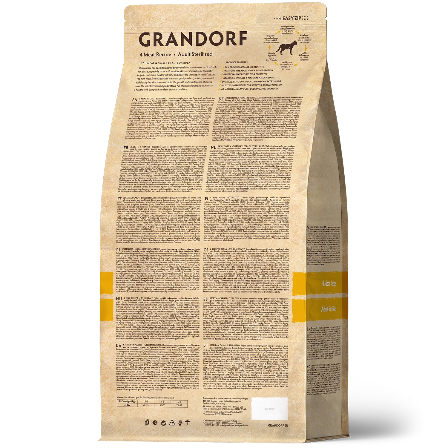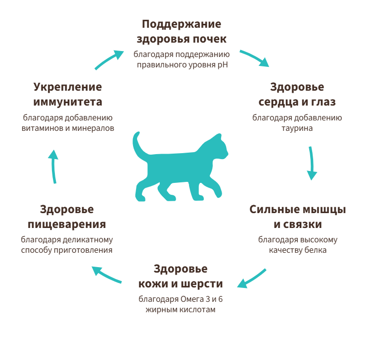 Низкое содержание жиров и повышенное содержание белков, а также L-Карнитин, способствует поддержанию веса и мышечной массы у стерилизованных и пожилых питомцев в оптимальной форме.