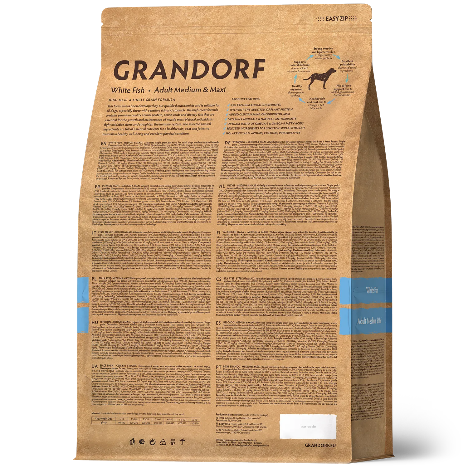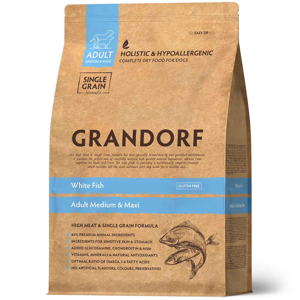 Низкозерновой состав и натуральные гипоаллергенные ингредиенты в сочетании с диетическим мясом белой рыбы, помогают предотвратить аллергические реакции и пищевую непереносимость, обеспечивая иммунное и пищеварительное здоровье.