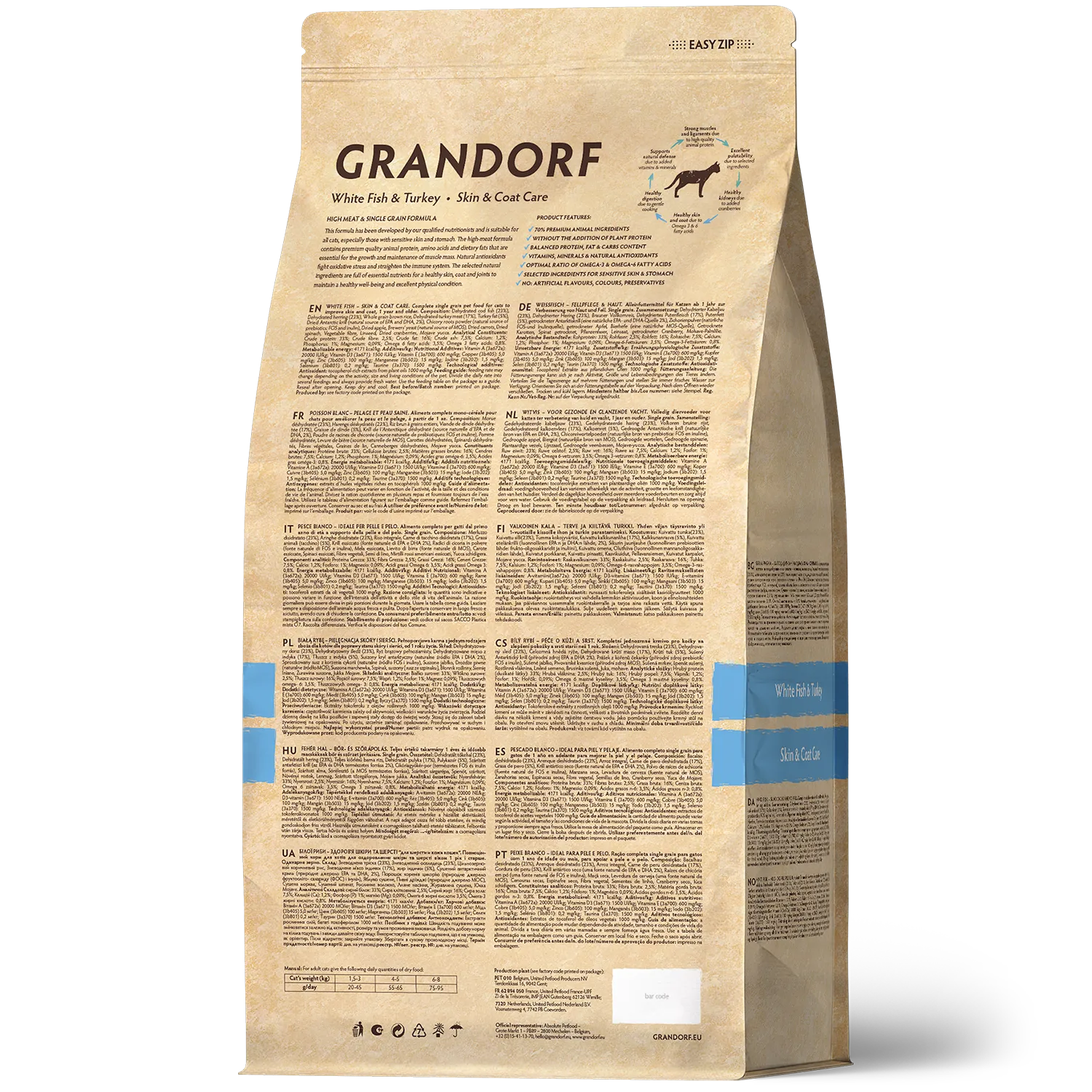 Низкозерновой состав и натуральные гипоаллергенные ингредиенты в сочетании с диетическим мясом белой рыбы, помогают предотвратить аллергические реакции и пищевую непереносимость, обеспечивая иммунное и пищеварительное здоровье.