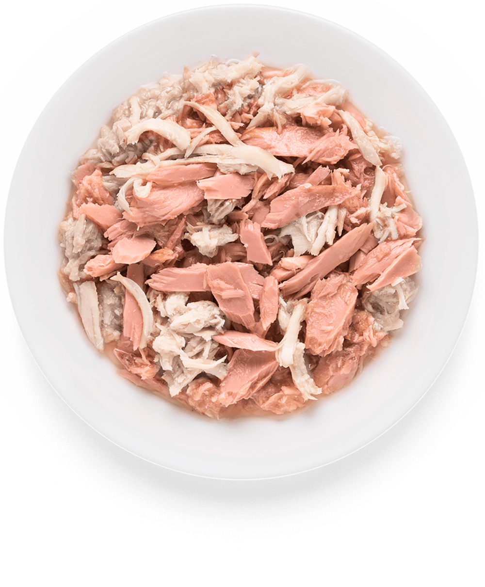 Филе тунца (45%), Куриная грудка (30%), Бульон (25%).