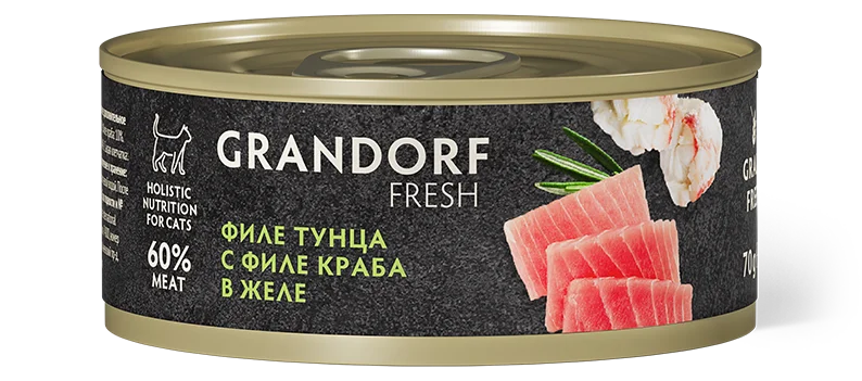 Филе тунца и краба – источник полезных витаминов и минералов, а также богатый источник белка с высокой степенью переваримости. Мясо краба содержит большое количество незаменимых аминокислот. Богато микро и макроэлементами, такими как медь, фосфор, селен, цинк, серы, витаминами группы B (В12, В6), РР и Омега-3 жирными кислотами. Поразит даже самого искушенного питомца своим незабываемым вкусом и ароматом.
