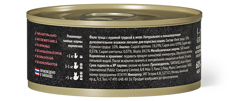 Филе тунца с куриной грудкой – источник полезных витаминов, минералов и аминокислот, а также богатый источник легкоусвояемого белка. Поразит даже самого искушенного питомца своим незабываемым вкусом и ароматом.