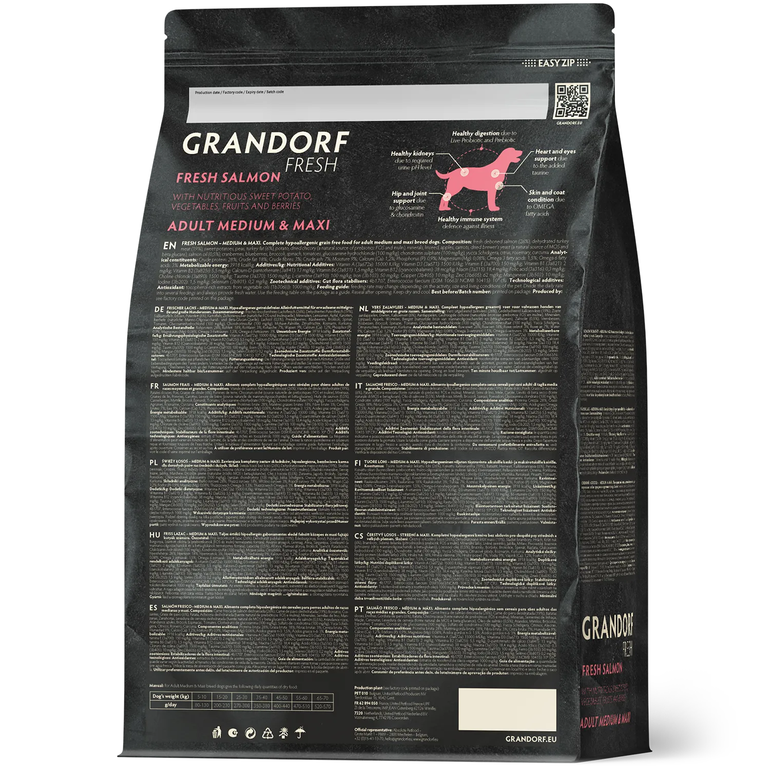 Свежее гипоаллергенное и питательное филе лосося благотворно влияет на пищеварительную систему собаки. Благодаря правильно подобранным ингредиентам, а также сбалансированному содержанию омега-3 и 6 жирных кислот корм имеет отличную усвояемость, высокую пищевую ценность и поддерживает здоровье чувствительной кожи и шерсти собаки.