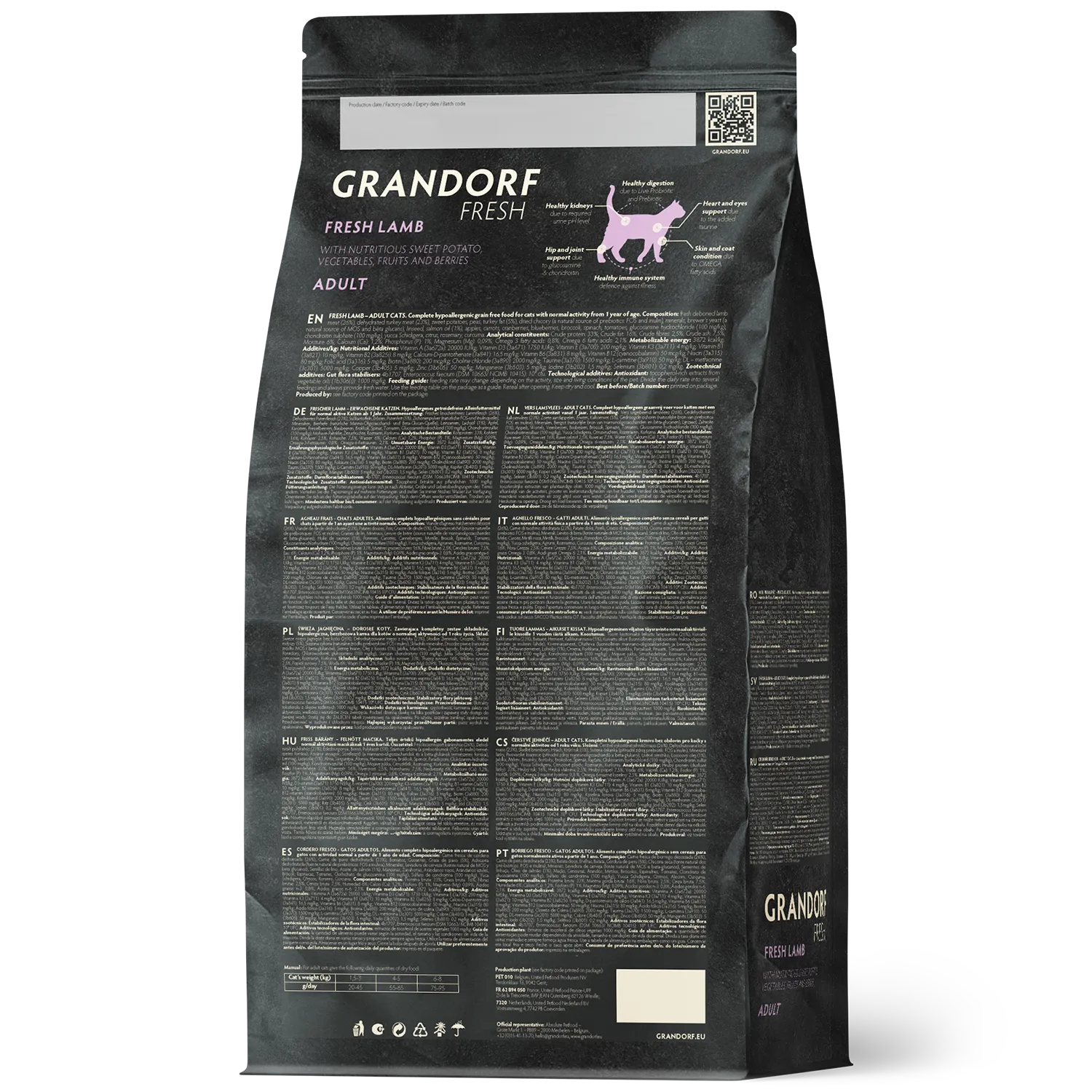 Свежее гипоаллергенное и питательное мясо ягненка благотворно влияет на здоровье кошки. Благодаря гипоаллергенным ингредиентам, беззерновому составу, живым пробиотикам, отсутствию глютена, корм имеет отличную усвояемость, высокую пищевую ценность и помогает оставаться вашему питомцу здоровым и жизнерадостным на протяжении долгих лет жизни.