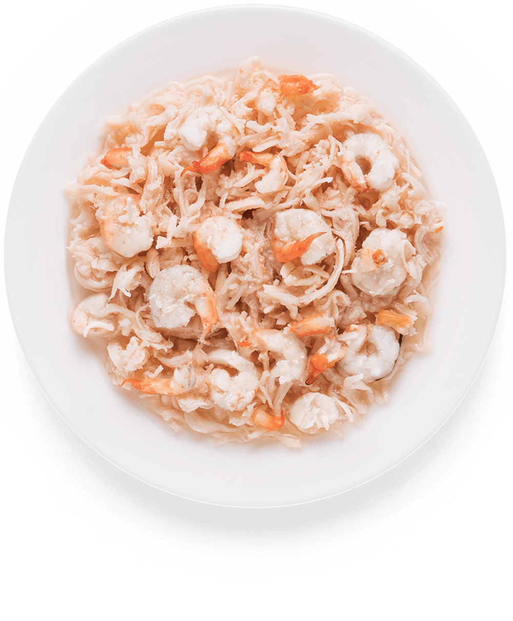 Куриная грудка (60%), Креветки (15%), Бульон (25%).