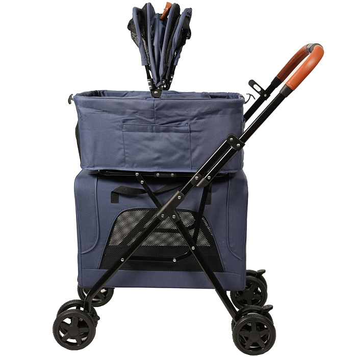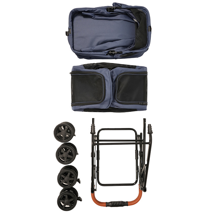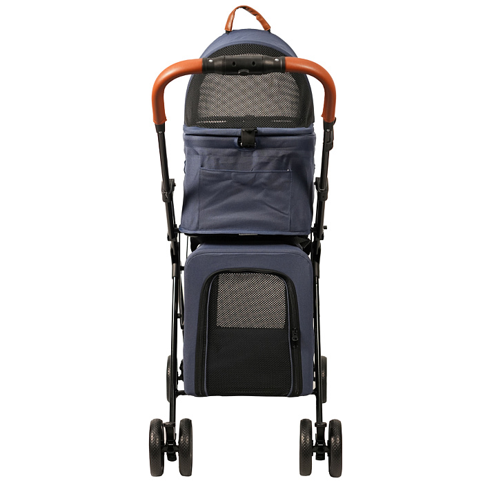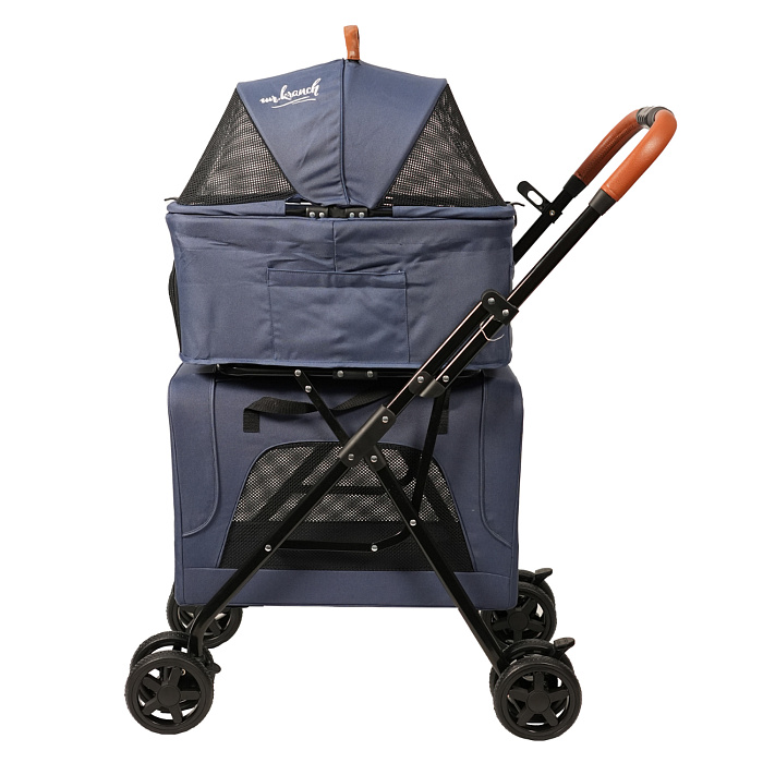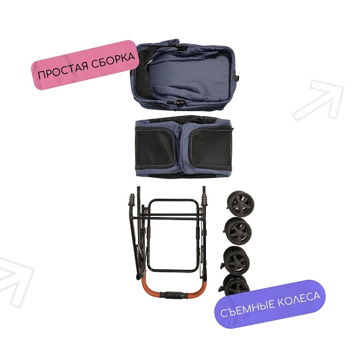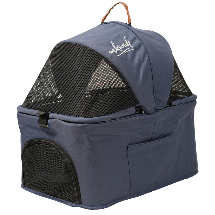 Коляска достаточно маневренная благодаря поворотному механизму на передних колесах. Самая извилистая дорожка окажется вам ни по чем. На задних колесах удобно расположена педаль для торможения в одно нажатие. На эргономичной ручке находится переключатель для быстрого складывания коляски для транспортировки. Переключатель можно задействовать одной рукой. Коляска Mr.Kranch по-настоящему многофункциональна: ей можно пользоваться по прямому назначению, также и использовать как переноску. Обе корзины отсоединяются. Так вы получите полноценные два товара в одном: одну корзину возможно оставить на шасси, а другую в постоянно отсоединенном виде использовать как переноску. Внутри предусмотрен ремень безопасности для питомца.