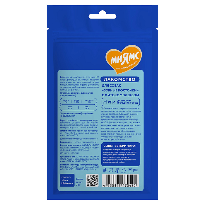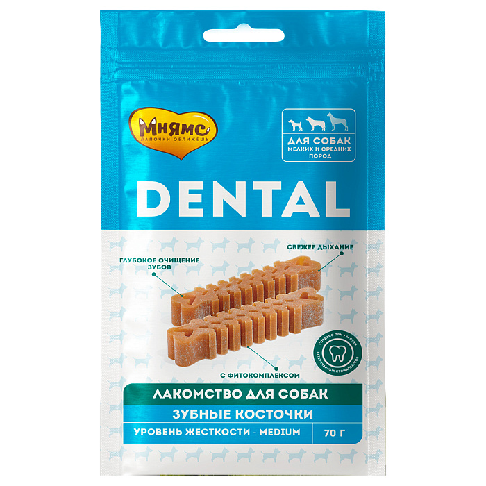 Мнямс ДЕНТАЛ "Зубные косточки" – вкусное и полезное лакомство для взрослых собак и щенков старше 3-х месяцев.