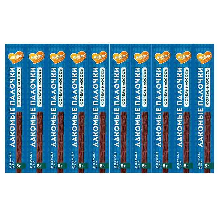 Лакомство Мнямс лакомые палочки для кошек с форелью и лососем 10х5 г