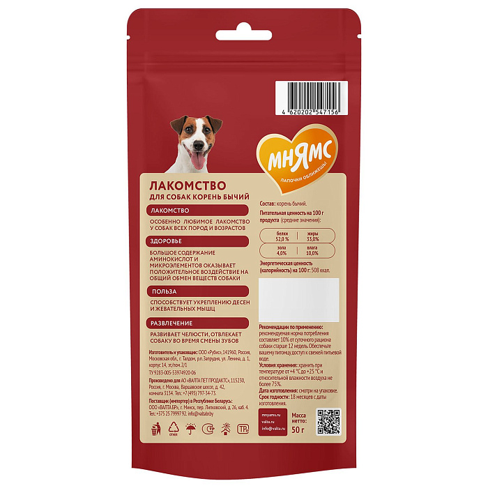 Большое содержание аминокислот и микроэлементов оказывает положительное воздействие на общий обмен веществ собаки. Особенно любимое лакомство у мелких и средних пород собак всех возрастов. Способствуют укреплению дёсен и жевательных мышц. Развивает челюсти, отвлекает собаку во время смены зубов.