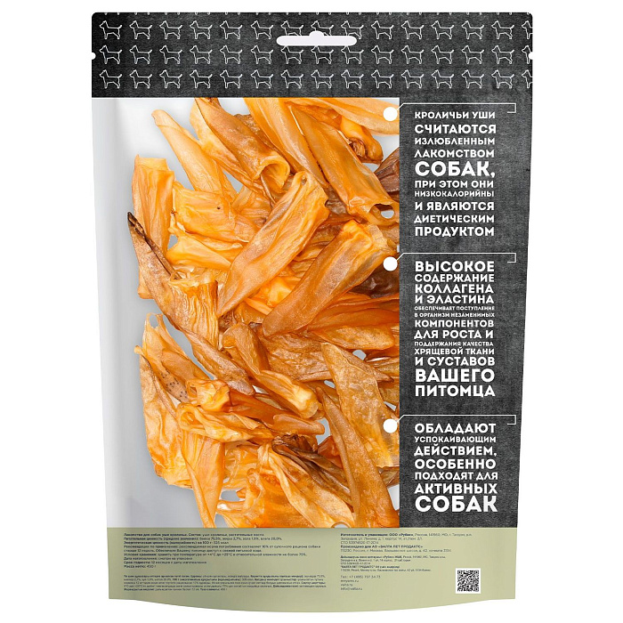 Кроличьи уши считаются излюбленным лакомством собак, при этом они низкокалорийны и являются диетическим продуктом. Высокое содержание коллагеновых и эластиновых волокон обеспечивает поступление в организм незаменимых компонентов для роста и поддержания качества хрящевой ткани суставов Вашего питомца. Обладают успокаивающим действием, особенно подходят для активных собак.