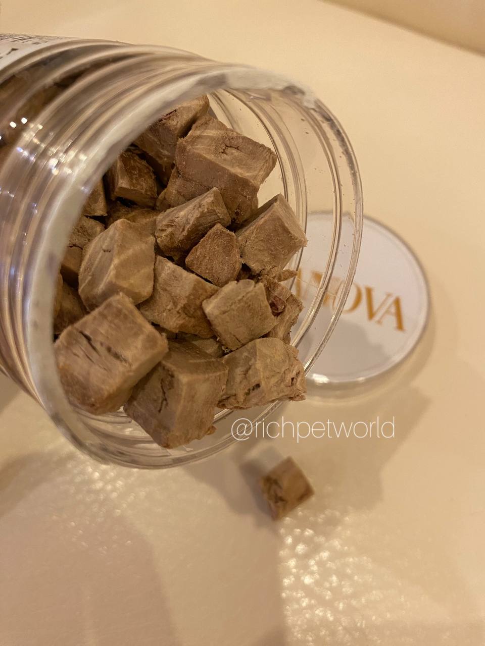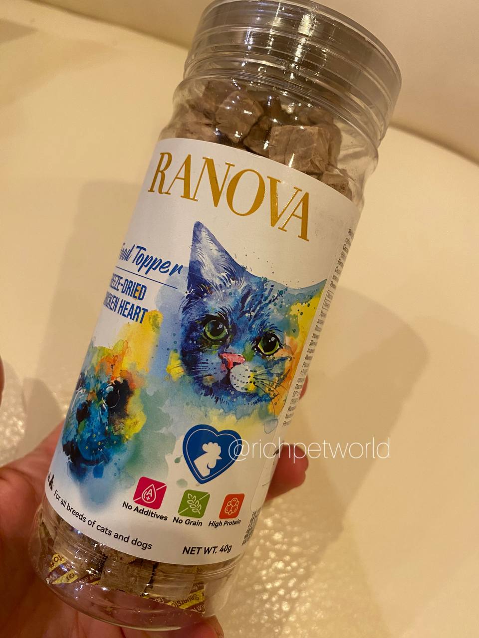 Лакомство Ranova для кошек и собак - порошок (в виде мягких кубиков) из сублимированных куриных сердечек, 40 г