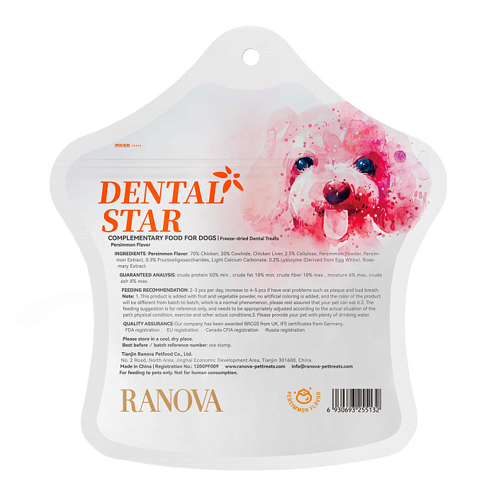 Звездочки для зубов с курицей и хурмой: Здоровые зубы и отличное настроение вашего питомца! Подарите своему четвероногому другу не только вкусное, но и полезное лакомство! Наши "Звездочки для зубов" с аппетитной курицей и натуральной хурмой – это идеальное сочетание удовольствия и заботы о здоровье полости рта вашей собаки.