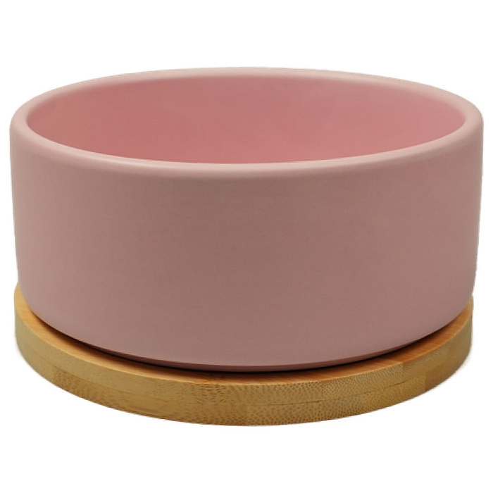 Миска Mr.Kranch Bamboo керамическая розовая на бамбуковой подставке 860 мл