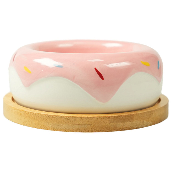Миска Mr.Kranch Bamboo Пончик керамическая розовая на бамбуковой подставке 250 мл