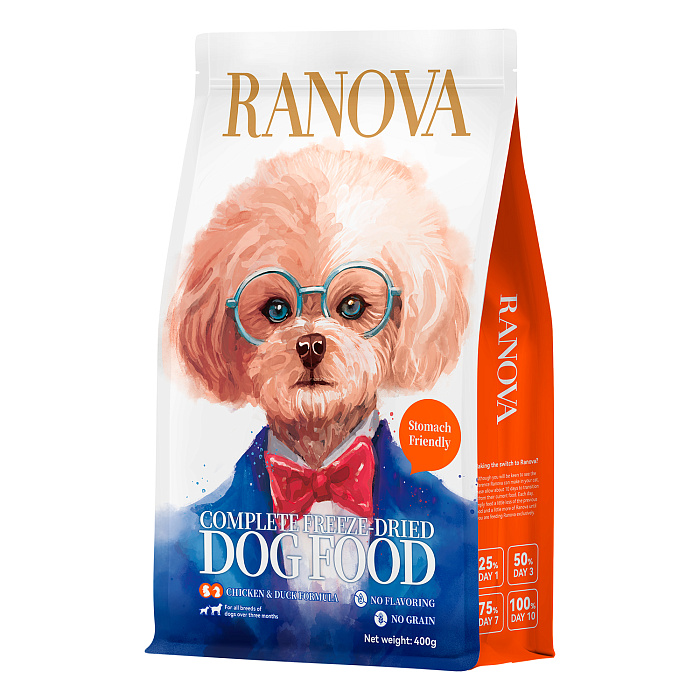 Полнорационный сухой (сублимированный) корм Ranova для собак с курицей и уткой, 400 г