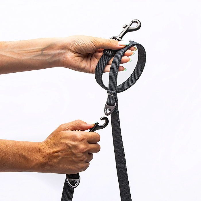 Поводок-перестежка CityLife сделан из мягкого, но прочного полиэстера. Прочные карабины выдержат энергичный рывок питомца. Поводок удобно держать в руке: конец ленты возможно закрепить у ближайшего кольца и сделать практичную ручку.
