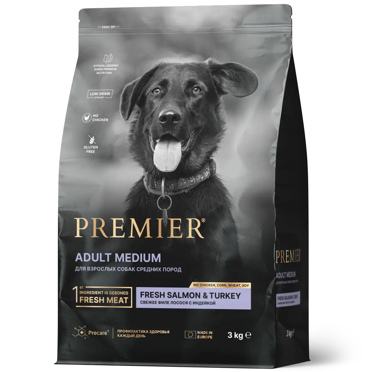 Для взрослых собак средних пород с нормальной активностью, чувствительной кожей и шерстью или склонных к аллергии.