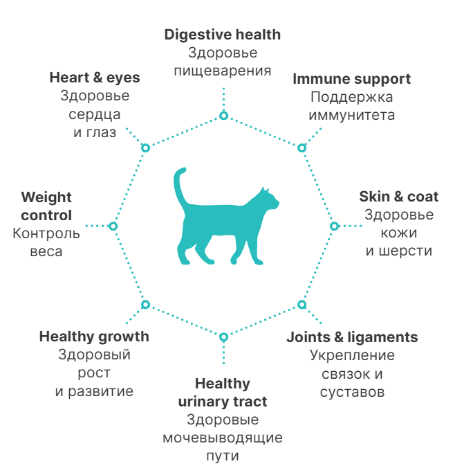 Для взрослых стерилизованных кошек и кастрированных котов от 1 года с чувствительным пищеварением или склонных к аллергии или пожилых кошек.