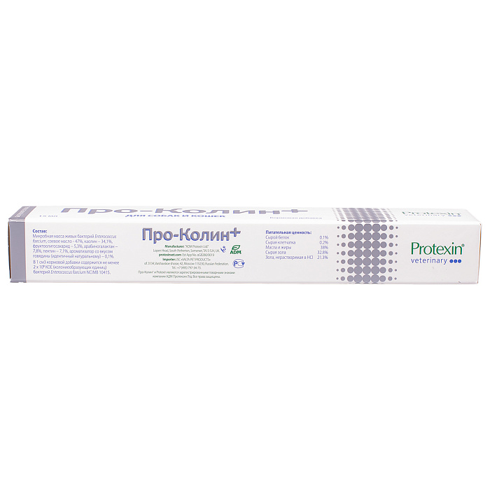 Про-Колин+® – пробиотическая кормовая добавка для нормализации микрофлоры желудочно-кишечного тракта и стимуляции обменных процессов у собак и кошек.