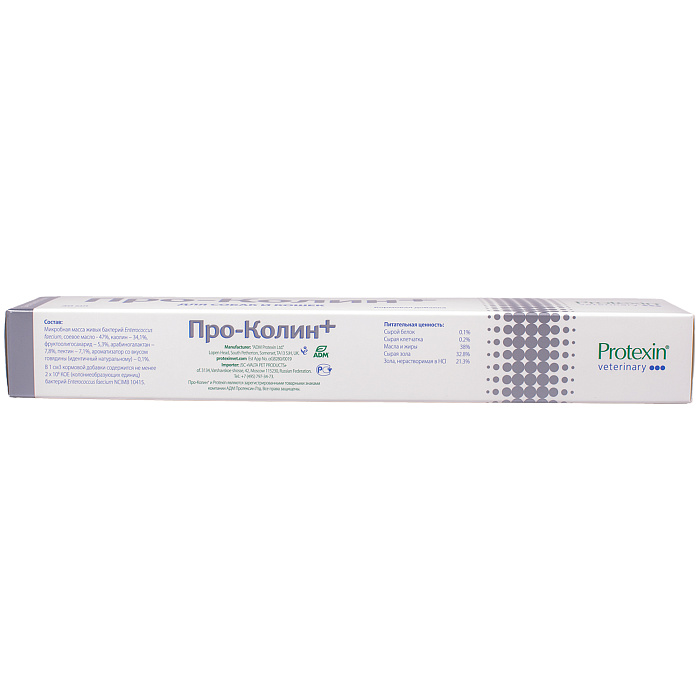 Действие кормовой добавки Про-Колин+® основано на комбинации ее компонентов. Штамм пробиотической бактерии Enterococcus faecium, входящий в состав пасты, нормализует микрофлору желудочно-кишечного тракта животных за счет конкурентного исключения условно-патогенных бактерий, нормализует процесс пищеварения. Комплекс пребиотиков, состоящий из фруктоолигосахарида (FOS) и акации (гуммиарабик), помогает стимулировать рост полезных бактерий.