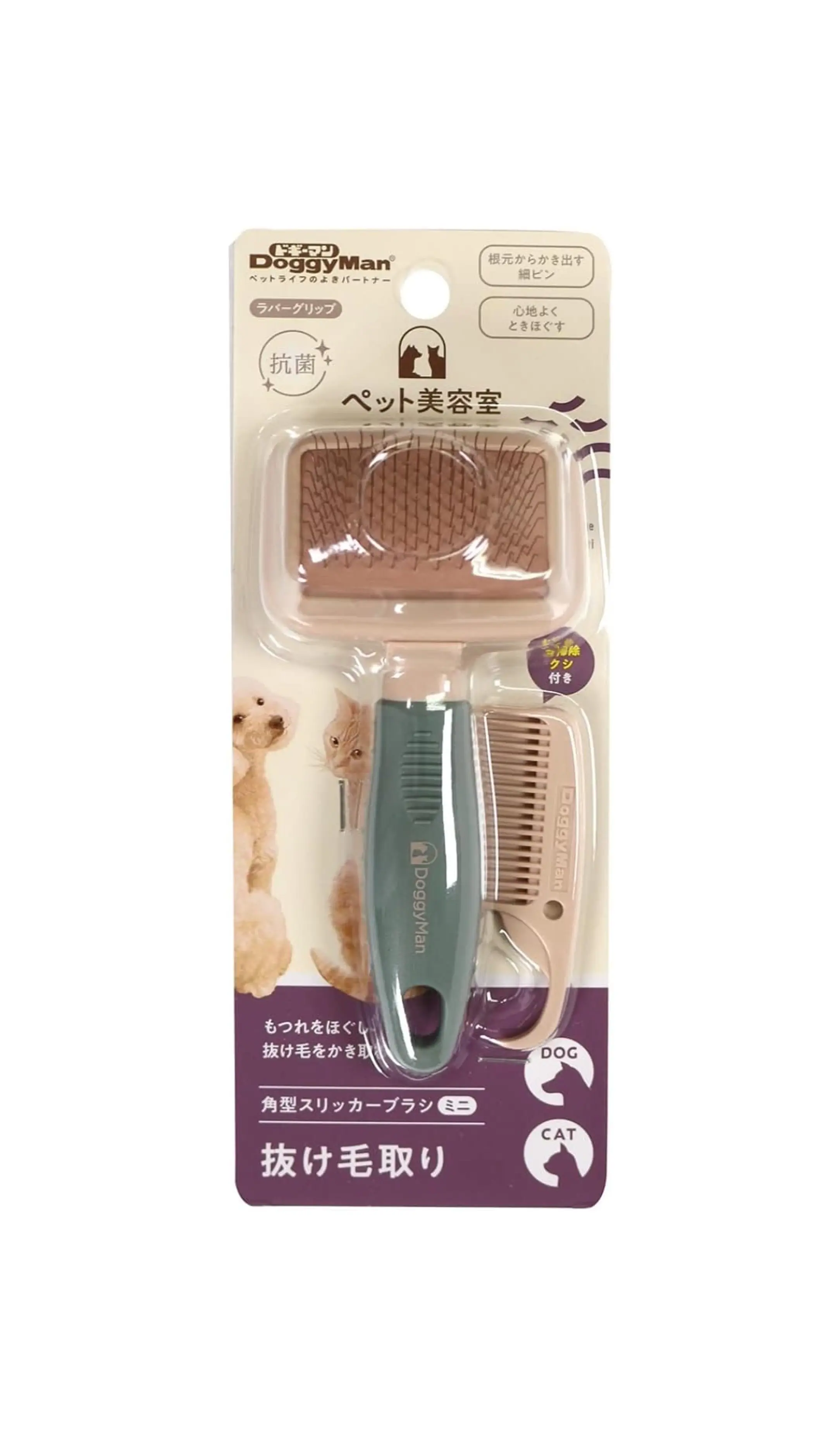 - В комплект входит мини-гребень с двойным функционалом. Его наконечник с одной стороны помогает распутывать колтуны и аккуратно снимать шерсть со сликера, а с другой — обеспечивает тщательный уход за тонкими и деликатными зонами: челкой, усиками, лапами и другими небольшими участками.