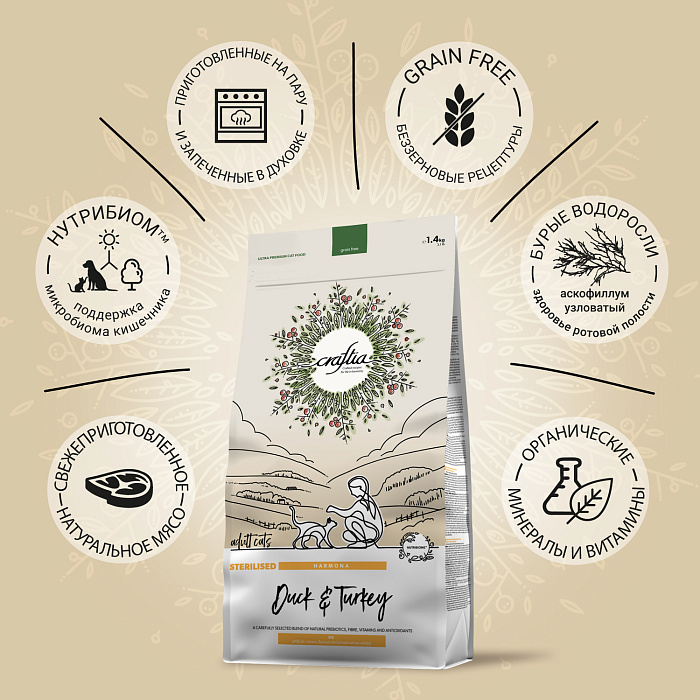 CRAFTIA HARMONA — корм для кошек ультрапремиум класса, созданный с любовью к природе.