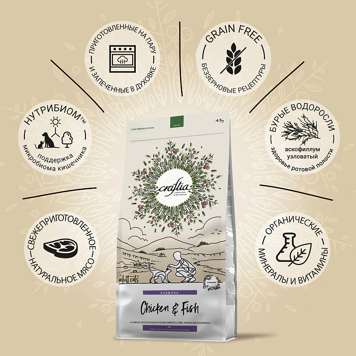 CRAFTIA HARMONA — корм кошек для ультрапремиум класса, созданный с любовью к природе.