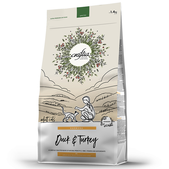 Сухой корм CRAFTIA HARMONA для взрослых кошек из утки и индейки 1,4 кг