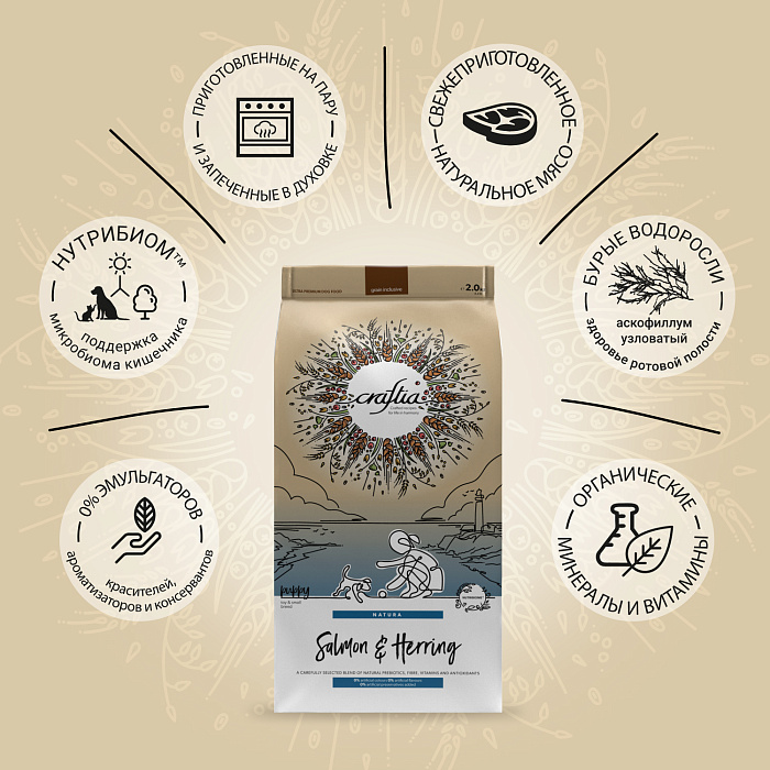 CRAFTIA NATURA — корм для собак ультрапремиум класса, созданный с любовью к природе.