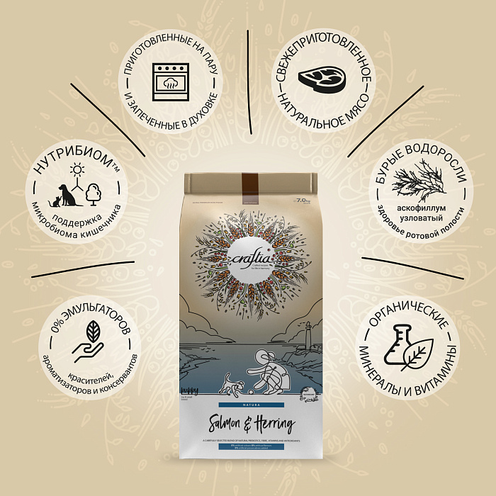 Сухой корм CRAFTIA NATURA для щенков миниатюрных и мелких пород из лосося с сельдью 7 кг