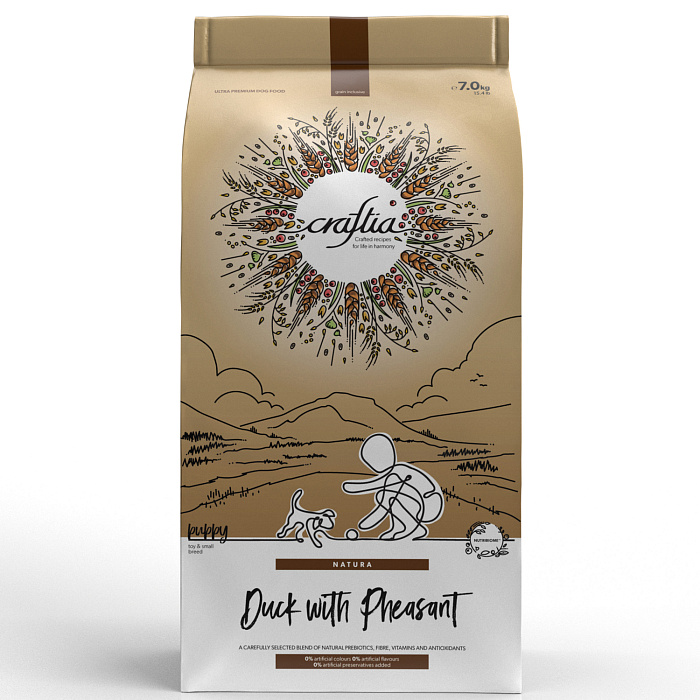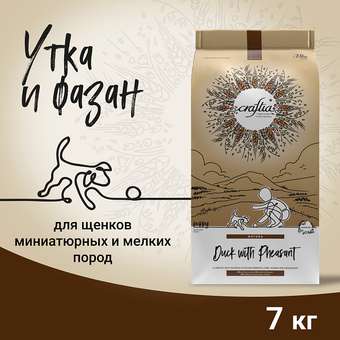 Сухой корм CRAFTIA NATURA для щенков миниатюрных и мелких пород из утки с фазаном 7 кг