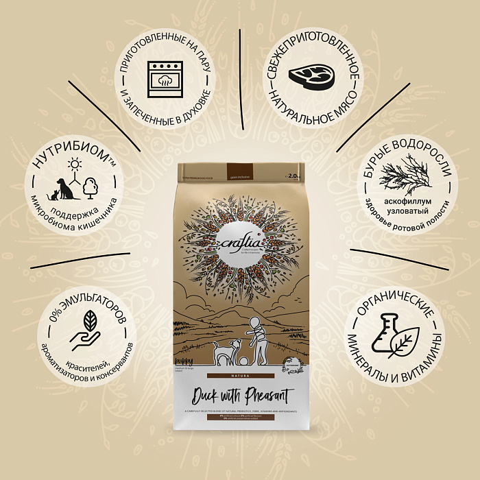 CRAFTIA NATURA — корм для собак ультрапремиум класса, созданный с любовью к природе.