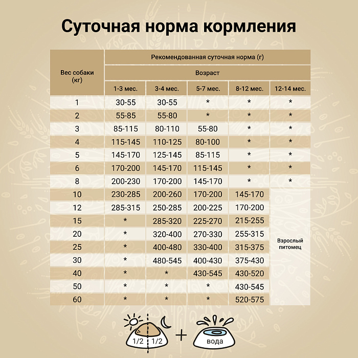 Источники углеводов — спельта, бурый рис, ячмень, овес и просо. Специально подобраны злаки с разным гликемическим индексом, чтобы питомец дольше чувствовал себя сытым: глюкоза поступает в организм постепенно, а значит, чувство голода не наступает дольше.