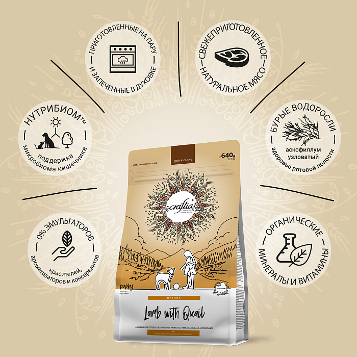 CRAFTIA NATURA — корм для собак ультрапремиум класса, созданный с любовью к природе.