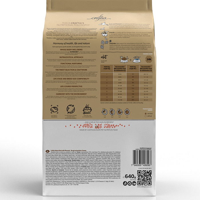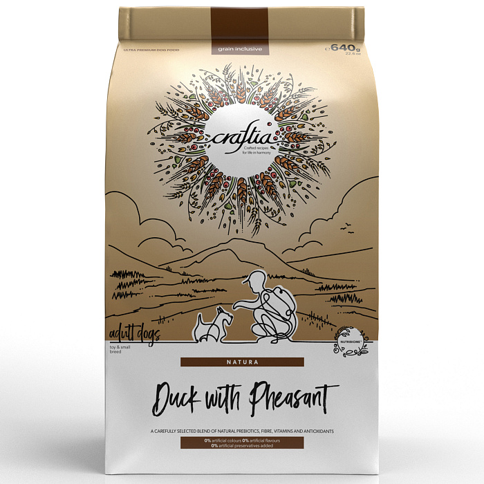 Сухой корм CRAFTIA NATURA для взрослых собак миниатюрных и мелких пород из утки с фазаном 640 г