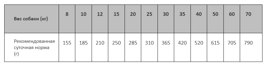 Питательная ценность: сырой белок 31,45%; сырой жир 17,7%; сырая клетчатка 1,75%; сырая зола 6,7%; кальций - 1,1%; фосфор - 0,9%; Омега-6 жирные кислоты - 3%; Омега-3 жирные кислоты - 0,8%; докозагексаеновая кислота (ДГК) - 0,45%; эйкозапентаеновая кислота (ЭПК) - 0,25%; глюкозамин – 1300мг/кг, хондроитина сульфат - 1000мг/кг.